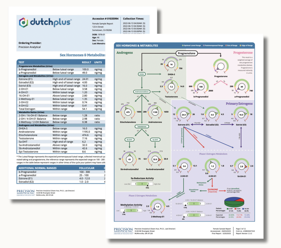The DUTCH test (Dried Urine Test for Comprehensive Hormones) is an advanced hormone test that uses dried urine samples to measure key hormones and their metabolites.